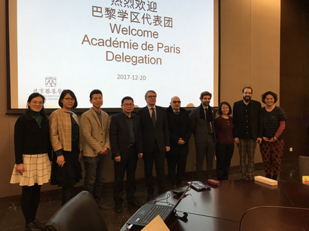 12月20日上午,法国巴黎学区应用型教育代表、学区长顾问布登南先生,巴黎特克蒂尔时装学校校长索莱尔先生,巴黎特克蒂尔时装学校教师杜漫先生在法国驻华使馆高等教育副专员顾博先生和大学合作官员苏铮铮女士的陪同下访问我校。副校长詹炳宏出席会见,研究生院院长田辉,教务处、国际合作与交流处老师参与会见。